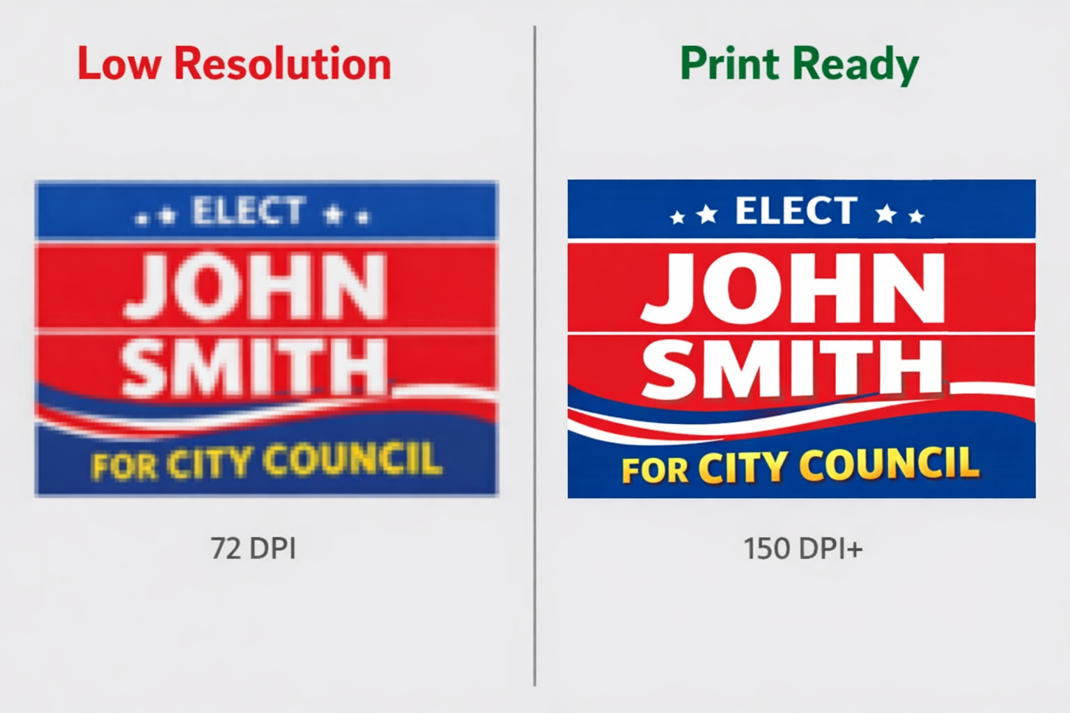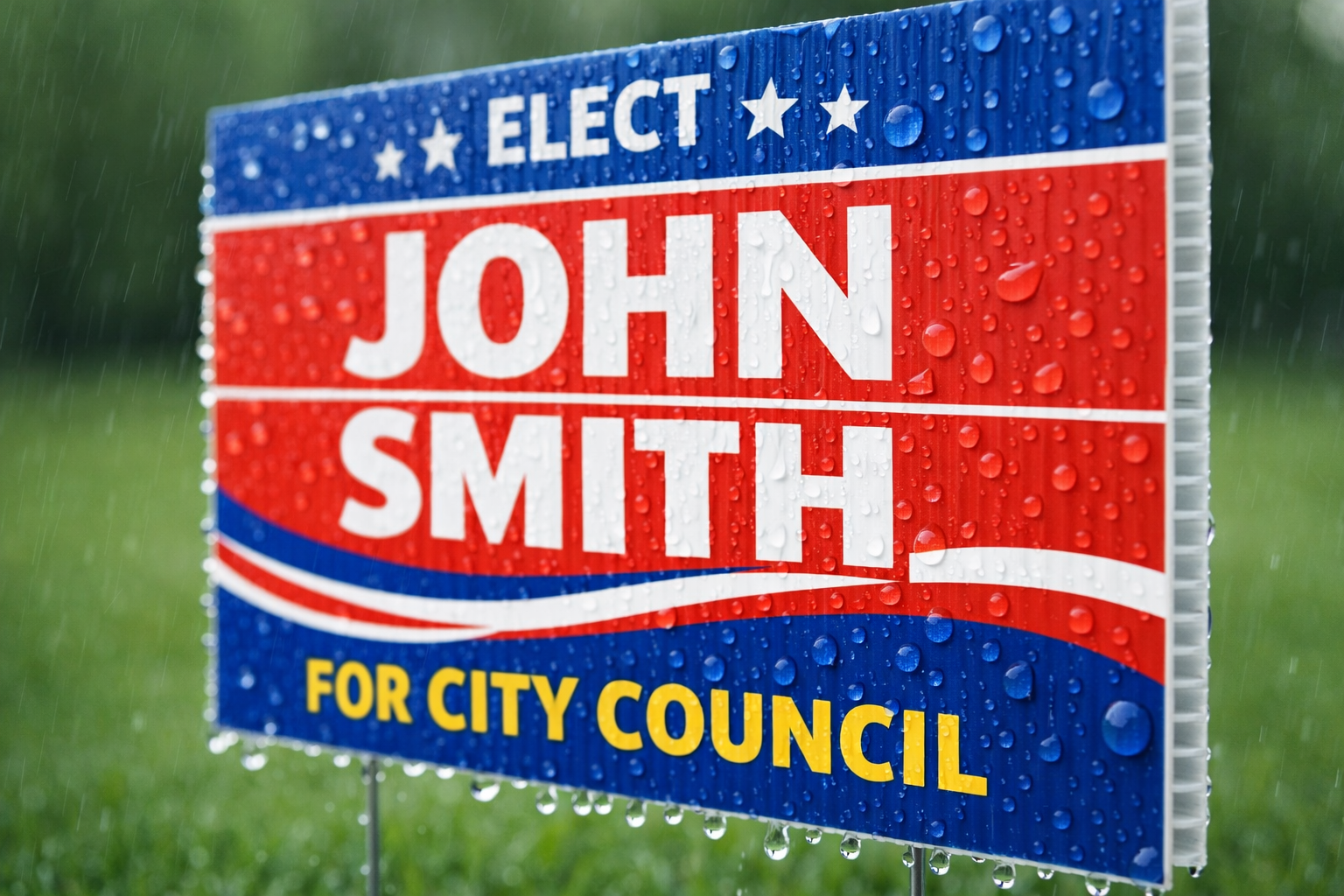 This matters because yard signs typically go up outdoors for weeks or months. Rain, sun, and wind are constants. Fast production should not mean a sign that fades or warps by the end of the first week.